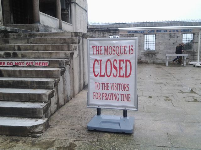 Bagaimana cara untuk menuju ke Masjid biru bisa dilihat disini. Masjid biru letaknya berhadap-hadapan dengan Hagia Sophia dan untuk memasukinya gratis. Masjid ini selain merupakan objek wisata juga masih berfungsi aktif sebagai masjid oleh karena itu suatu waktu anda akan mendengar adzan dilantunkan. Masjid ini akan ditutup selama satu jam di setiap awal-awal waktu sholat.